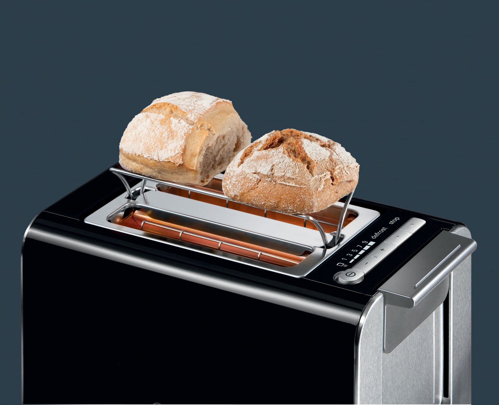 Siemens TT86103 Ekmek Kızartma Makinesi ise sensörlü ısıtma kontrolü sayesinde her dilimde aynı kızartma performansı sunuyor. 9 farklı kızartma ayarına sahip ürün camdan üretilmiş ısıtıcısı ve ekmek hizalama özelliği sayesinde her yanı eşit ve dengeli ekmekler kızartmayı mümkün kılıyor. Buz çözme özelliği sayesinde de dondurucudan çıkardığınız ekmekleri saatlerce çözmekle uğraşmadan hızlıca kızartabiliyorsunuz.
