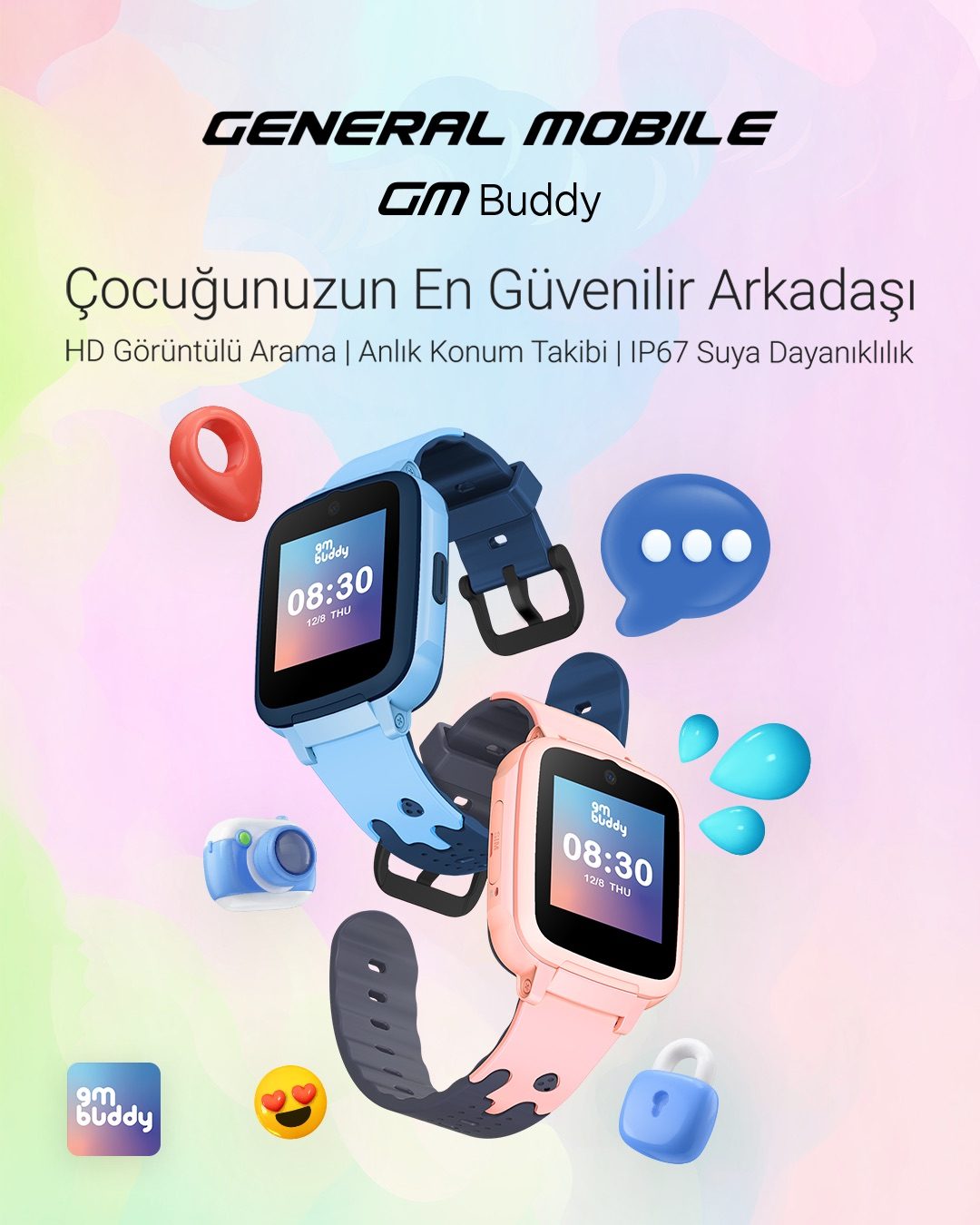 Ulaşılabilir, güncel teknolojilere sahip akıllı mobil çözümler geliştiren General Mobile, çocuğunuzla güvenli ve hızlı iletişimi sağlayan GM Buddy akıllı çocuk saatini beğeniye sundu. Çocuğunuz yanınızda olmasa da güvenliğini sağlamak ve onunla iletişimi yönetmek GM Buddy ile artık çok kolay!