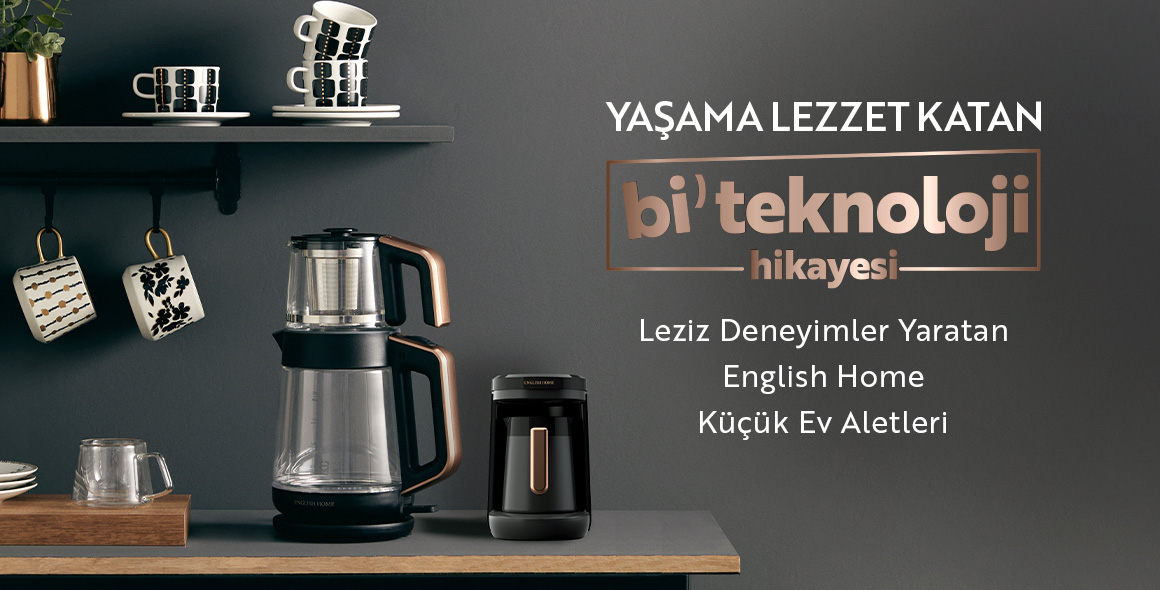 Sofra ve mutfaklardaki uzmanlığını, ürün çeşitliliği gücünü, küçük ev aletleri kategorisine de yansıtan English Home, küçük ev aletleri kategorisine ilk olarak sıcak içecek ürün grubu ile girdi. Türkiye ve global mağazacılığın yanı sıra online satış kanallarında da kullanıcılarının beğenisine sunduğu Çift Taşım Türk Kahve Makinesi, Sütlü Türk Kahve Makinesi, Cam Çay Makinesi ve Inox Çay Makinesi ürünleri ile English Home, mutfakları teknolojiyle buluşturuyor.