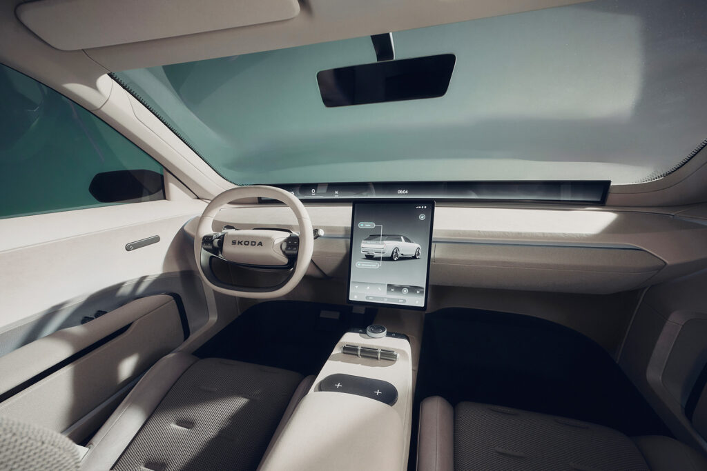 Škoda’nın müşteri odaklı yaklaşımının bir örneği olan Vision O, tamamen yeni bir iç mekan konsepti sunuyor. 650 litreden fazla bagaj kapasitesi (katlanabilir koltuklarla 1.700 litre) ile maksimum pratiklik, sadeliği ve ferahlığı vurgulayan minimalist bir tasarımla karakterize ediliyor.