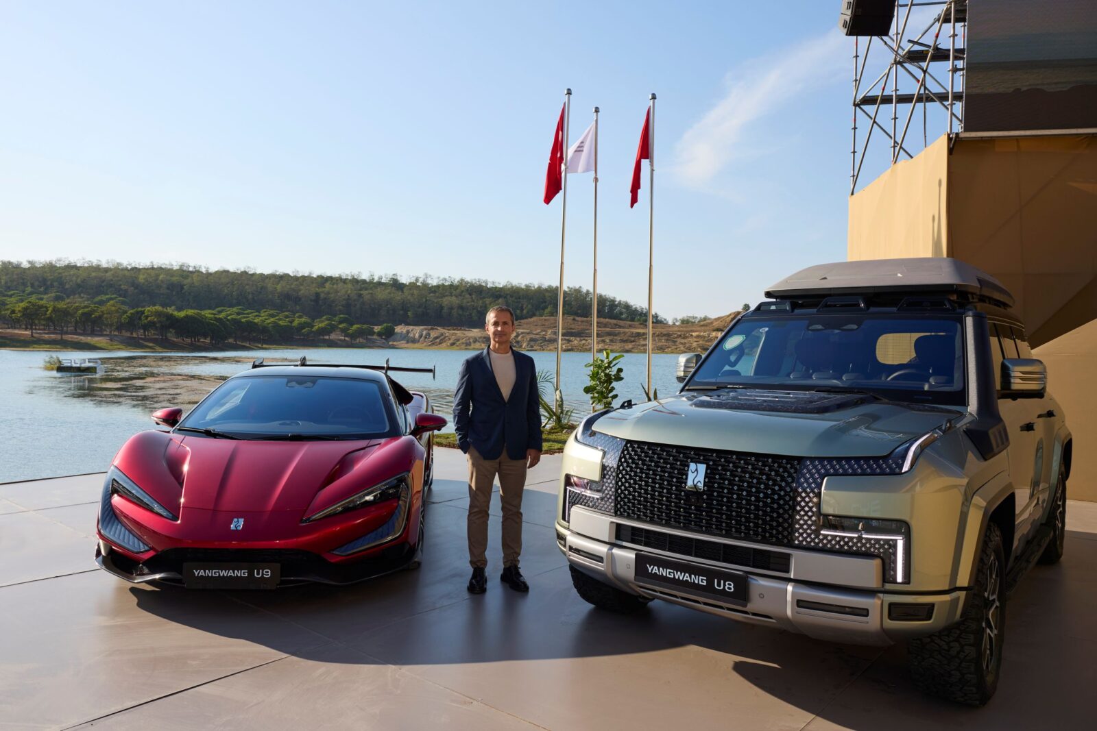 BYD Türkiye’nin Kemerburgaz’da sıfırdan inşa ettiği özel platformda, BYD’nin lüks segment markası YANGWANG’ın U8 ve U9 modelleri, ileri teknolojiyle bezeli görkemli bir şovun başrolündeydi. Etkinlikte katılımcılar, 17 Eylül’de gerçekleştirilecek TEKNOFEST İstanbul’da sergilenecek olan bu araçları yakından inceleme ve performanslarını tanıklık etme fırsatı buldu.