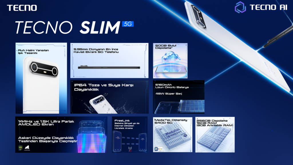 TECNO, dünyanın en ince, kavisli 5G telefonu unvanına sahip yeni TECNO SPARK Slim 5G modelini Türkiye’de satışa sundu. 5,95mm inceliği, ultra hafif gövdesi ve yüksek performans özellikleriyle genç neslin “daha az, daha fazladır” felsefesini somutlaştıran cihaz, mobil deneyimi yeniden tanımlıyor.