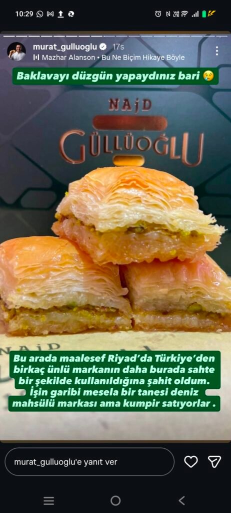 Nadir Karaköy Güllüoğlu markasını Najd Ğüllüoglu” olarak 2 harf değişikliğiyle uygulayan mekan için Suudi Arabistan makamlarının nasıl bir yaptırım uygulayacağı merak konusu olurken, Murat Güllü, Türkiye’de tanınmış başka markaların da Suudi Arabistan’da kopyalandığını söyledi.